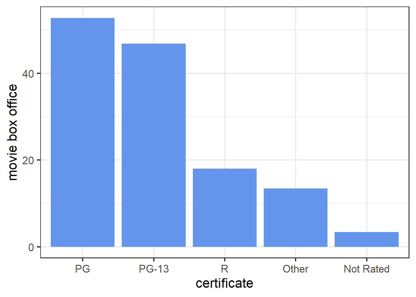 The PDP of certificate in tree model shows that PG and PG-13 movies tend to have more box office while Not Rated movies tend to have less box office. This is similar to the results obtained from linear model.